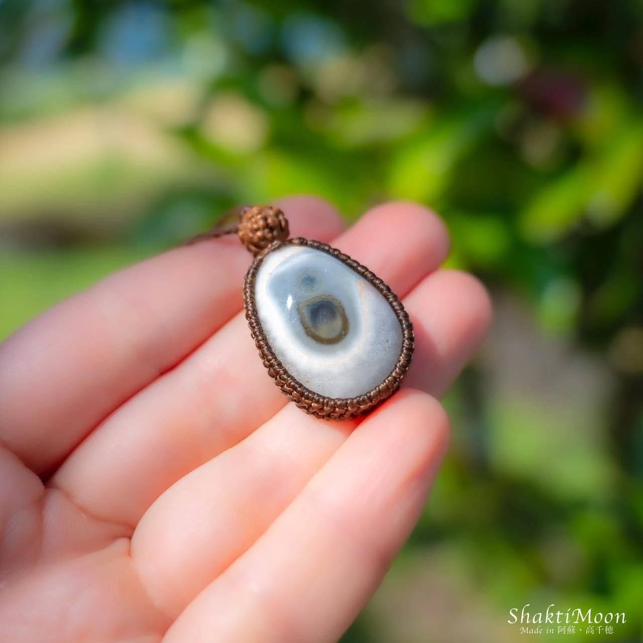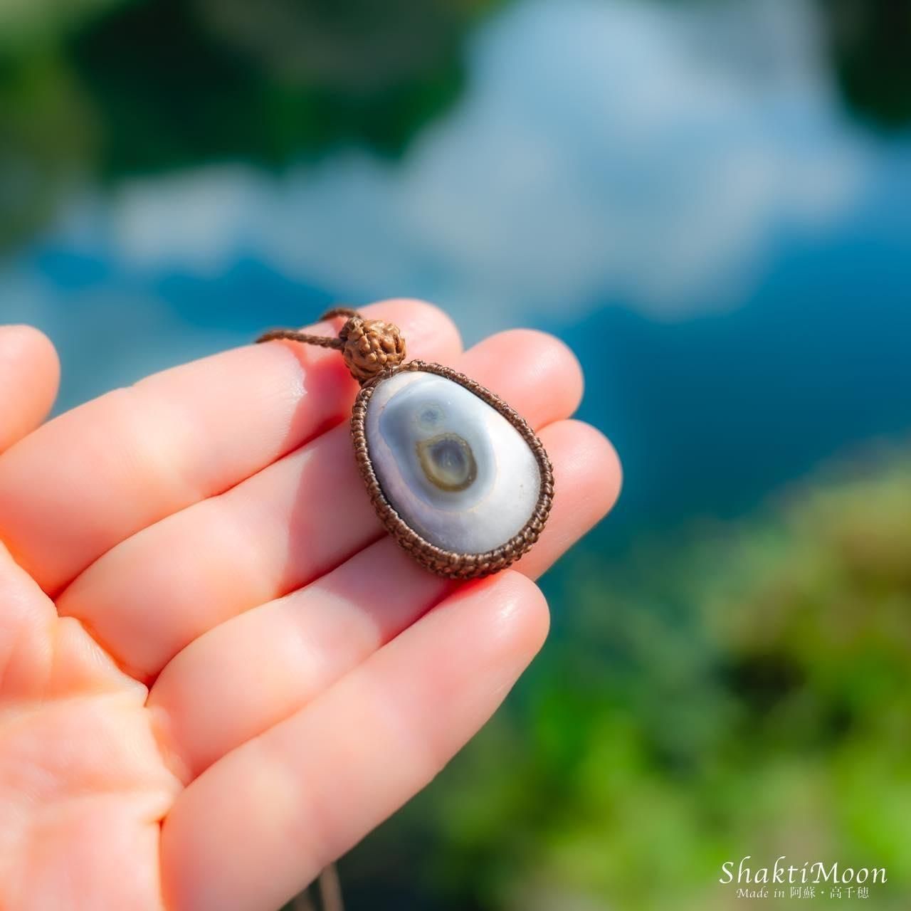 レイキ・シンギングボウルヒーラーでもあるオーナーが、悠久の大自然に囲まれたパワースポットとしても名高い神々の棲まう聖なる地-阿蘇・高千穂にて、ひとつひとつ心を込めて丁寧に結んだマクラメネックレス・ペンダントです。